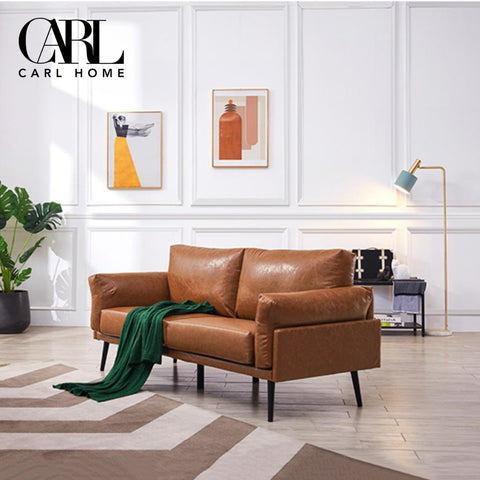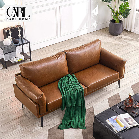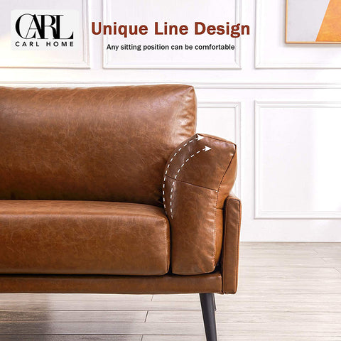 🍂MID-CENTURY STYLE: Comfort and quality combined to create a beautiful and durable sofa, the CARL HOME PU leather Sofa makes any modern living space appealing yet cozy. It is a naturally strong frame that features a streamlined silhouette suited for a variety of decor styles. It's absolutely a good idea for placement in a living room, apartments, studios, office.