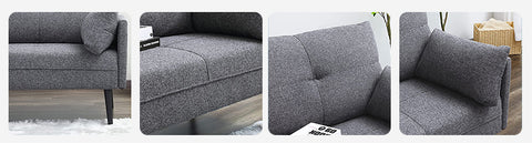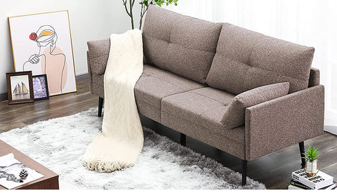 【Premium Material】This couch is crafted from quality fabric and boasts foam-filled polyester upholstery for an inviting feel. Besides, it features a sinuous spring seat construction, square arms, and two throw pillows to round out the design.