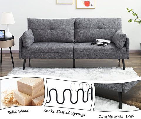 Premium Material】 This couch is crafted from quality fabric and boasts foam-filled polyester upholstery for an inviting feel. Besides, it features a sinuous spring seat construction, square arms, and two throw pillows to round out the design.