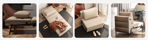 Easy Assembly&Use: Installation instruction is attached to help quickly assemble, and adult assembly is needed. The simple three-fold opening method with hidden folding legs allows you to quickly switch between the lounge sofa and the single bed with one pull, one lift, and one release.