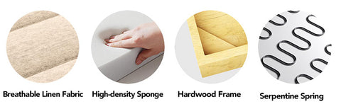 Comfortable: The sofa cushion is designed to meet different sitting postures, and this foldable sofa is comfortable for lying or sitting upright. Upholstered with linen fabrics, it is light and relaxed when sleeping. The backrest and cushion are filled with high-density sponges so that the body can enjoy comfortable support when sitting down.