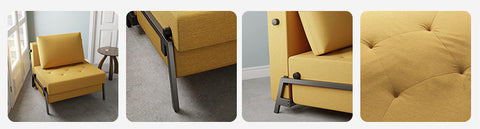 Comfortable: The sofa cushion is designed to meet different sitting postures, and this foldable sofa is comfortable for lying or sitting upright. Upholstered with linen fabrics, it is light and relaxed when sleeping. The backrest and cushion are filled with high-density sponges so that the body can enjoy comfortable support when sitting down.